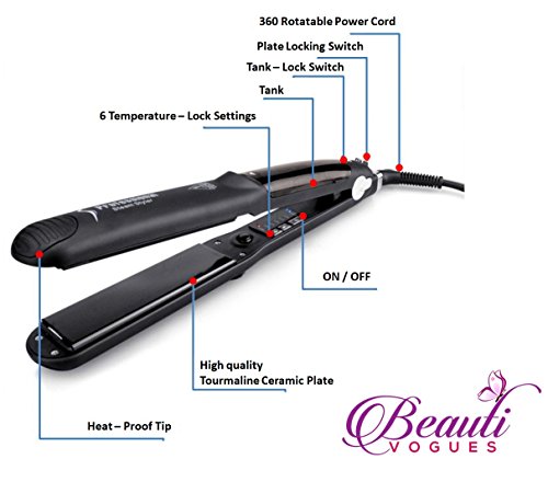 - SMART FEATURES: High-end rubber matte surface for cozy holding, worldwide dual voltage appliance, removable water tank for easy refills, 60MIN auto shut off, 360° swivel salon grade cord (prevents tangling), and lockable plates for traveling.
