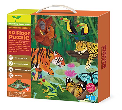 -. Binding : Toy -. Brand : 4M -. EAN : 0085761224605 -. Feature : Create a jungle play scene with this three-dimensional floor puzzle / Entertain and let kids' imagination run wild with this puzzle collection / With six 3D puzzles, one 9-piece flat puzzle, and instructions, friends and family can join in on the fun / Join in a fun activity for rainy days with this entertaining kit / These puzzles are recommended for kids 4 and up -. IsAdultProduct : 0 -. Label : Toysmith -. Manufacturer : Toysmith -. Model : 4954 -. MPN : 4954 -. PackageQuantity : 1 -. PartNumber : 4954 -. ProductGroup : Toy -. ProductTypeName : TOYS_AND_GAMES -. Publisher : Toysmith -. Studio : Toysmith -. Title : 4M 3D Rainforest Floor Puzzle (54 Piece) -. UPC : 085761224605 -. Warranty : 51 day warranty against manufacturer defects