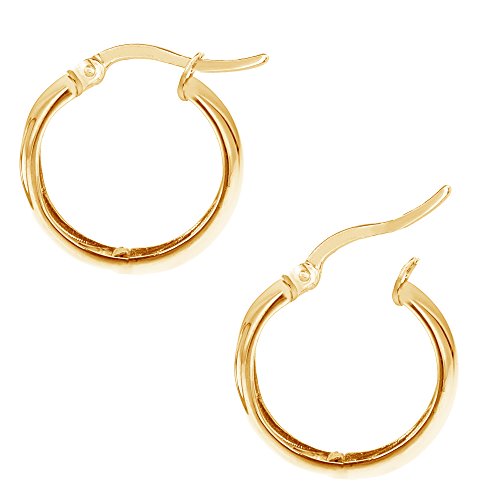 14k Gold Shiny Polished Wide Huggies Hoop Earrings 6x13.5 Mm