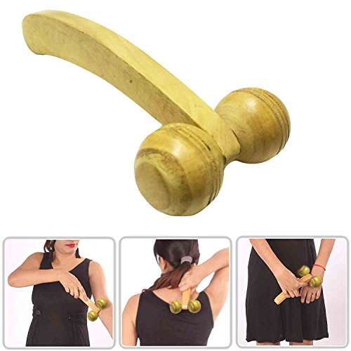 Thanks Giving Gift for Loved Ones, Wooden 2 Ball Roller Yellow Color Small Massager, Pain Relief Massager, Roller Massager For Shoulder, Neck, Back & Body Pain Relief - 6 Inch