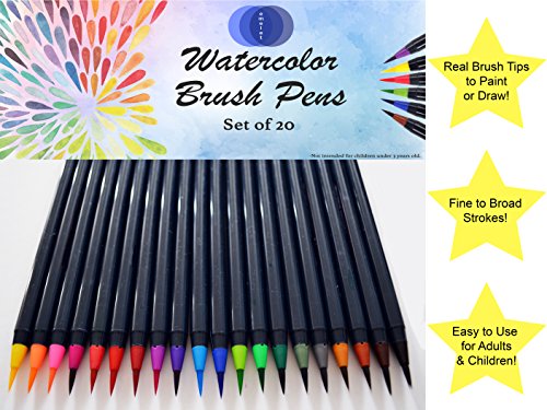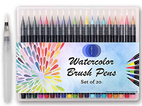 Premium Watercolor Brush Pens - 20 Watercolor Markers Set + 1 BONUS Brush Pen - Soft Flexible Brush Tip | Watercolor Marker Set for Artists, Adult Coloring Books, Calligraphy, Comic, Manga, Lettering