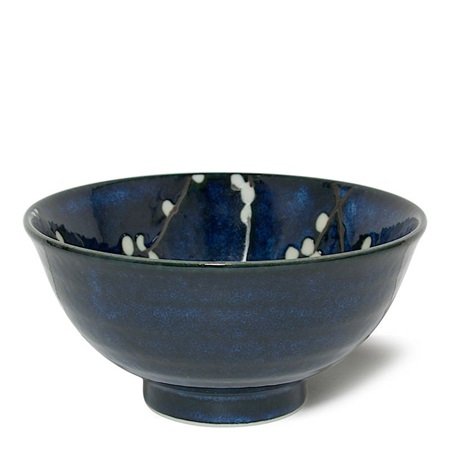 Product Description 6.75" Namako blossoms bowl made in Japan. Measures 3.5" high. It is a rich dark blue with white blossoms inside. Great bowl for pasta, ramen or maybe a very big bowl of ice cream. 0