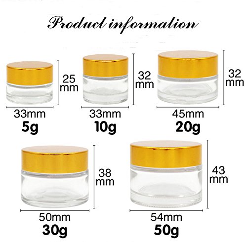 Furnido 6pcs 10g Empty Refillable Glass Jars with Liners and Screw Lid Cream Bottle Pot Jars Cosmetic Comtainer for Lotion, Creams, Toners, Eye Cream,Lip...