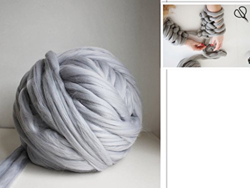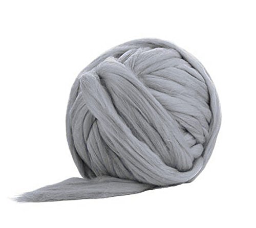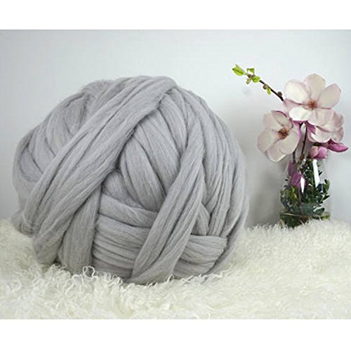 Chunky Yarn Super Bulky Giant Wool Yarn Roving For Arm Knitting Extreme Knitting (1.1lbs(0.5kg), Light Grey)
