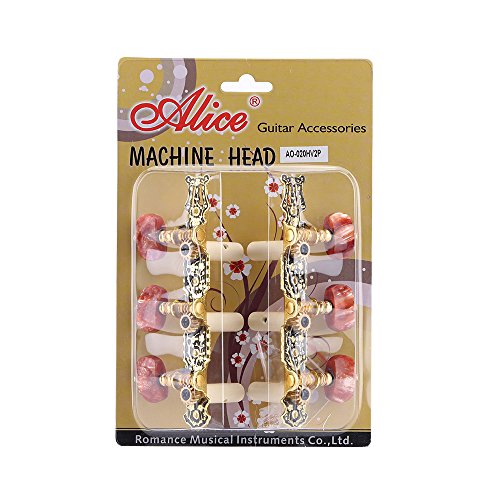 Andoer Alice AO-020HV2P 2pcs(Left + right) Classical Guitar Tuning Key Gold /Black Plated Peg Tuner Machine Head(long) String Tuner