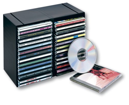 -. Feature : Plastic storage tray has a 30 disc capacity / Four slots for double CDs / Stackable and wall mountable