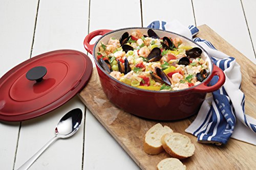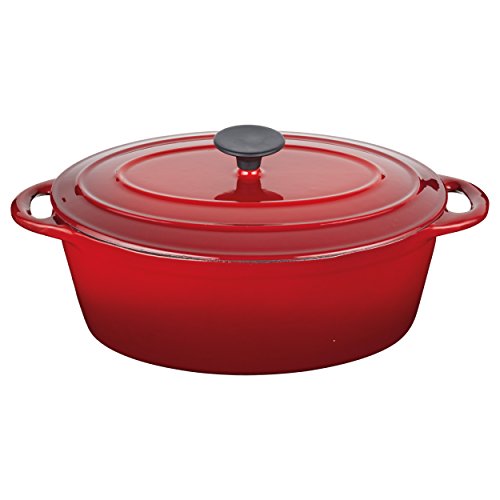 Kitchen Craft 29 x 23 x 0,5 cm, 5 Liter-Aus der Master Class-Schmortopf Oval aus Gusseisen mit Deckel, rot