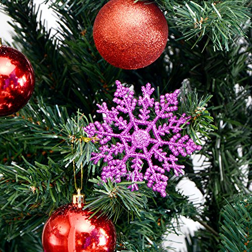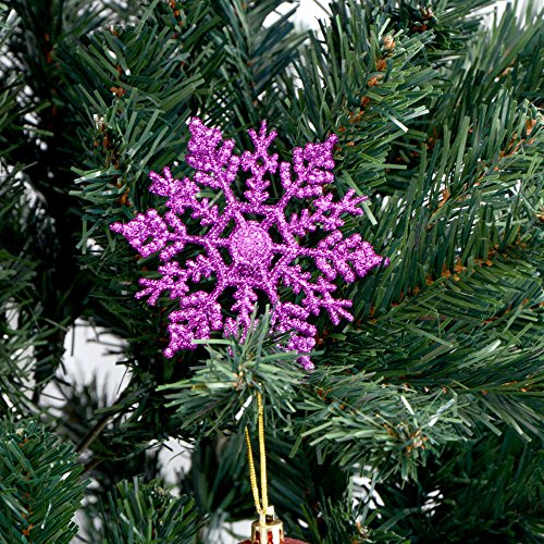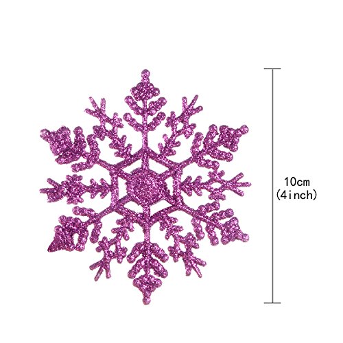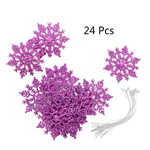 Saim Set of 24 Snowflake Christmas Ornaments Winter Wedding Favor Birthday Party Theme Decoration for Girls - Iridescent White Glitter - 4"Dia. (Purple)
