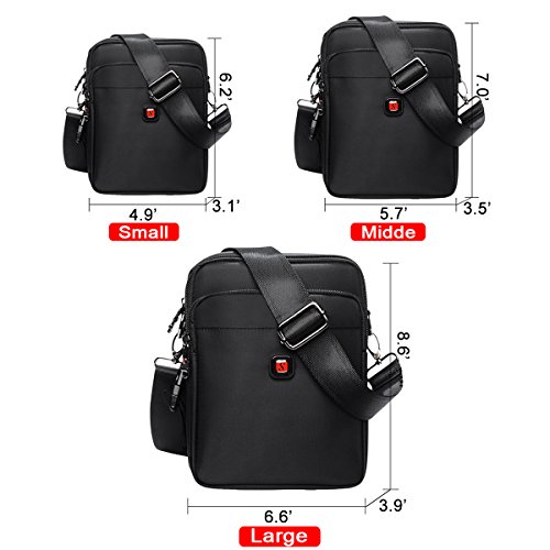 Basic Specifications Dimension: Large:6.6"L x 8.6"H x 3.9"W, Middle:5.7"L x 7"H x 3.5"W, Small:4.9"L x 6.2"H x 3.1"W. Type: Unisex classic oxford crossbody messenger bag, fashion waist pack.