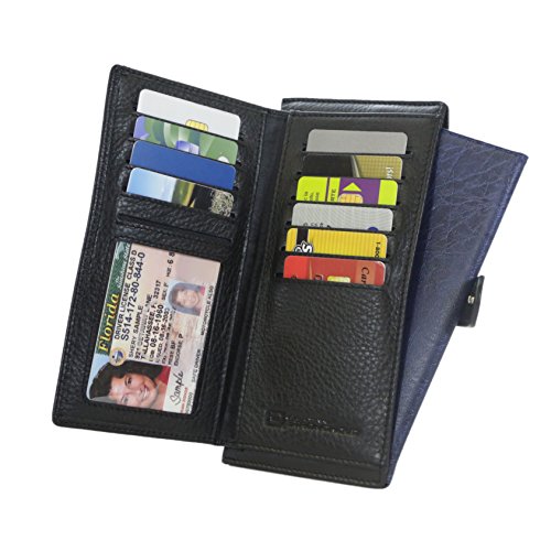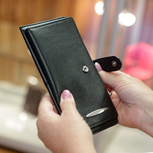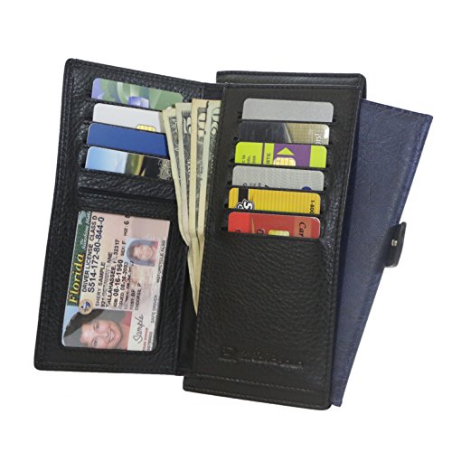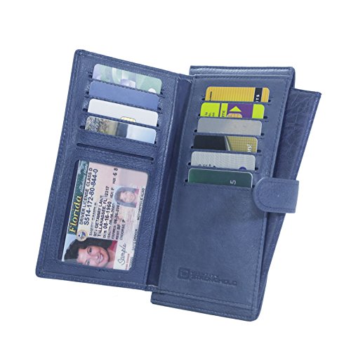 -. Feature : ROOM FOR EVERYTHING YOU NEED. This checkbook wallet features eleven card slots including a clear ID window with a thumbhole. It's also equipped with three full length pockets to accommodate bills, a checkbook and receipts. This checkbook wallet features a snap fastener for easy access along with a slim design which allows you to fit the wallet in a wide variety of purses. / STAY ORGANIZED. Doesn't it make sense to keep all forms of payment together? Forget about digging around in your purse for your checkbook. Simply pull out your wallet, and voila! The ladies slim checkbook wallet is just that - slim. Carry everything you need to go shopping without adding undue bulk. You can throw it in a larger bag, or carry it by itself as a clutch. / GENUINE LEATHER. This top quality checkbook wallet is made of super soft and supple genuine leather and features the ID Stronghold logo so you can feel assured that you are getting the best protection possible. Knowing your credentials are electronically secured, this wallet looks and feels great, making you look and feel great too! / EVERY SLOT SHIELDED to protect your Credit Card, Debit Card, Enhanced Driver's License, Transit Card, Hotel Room Key, Passport Card, etc. transmitting at 13.56 Mhz and higher. Designed with top security in mind. As with all ID Stronghold wallets, every slot, ID window, billfold, and compartment is individually shielded, so your information is protected, no matter where you place your RFID cards. This is not a feature found in most RFID wallets. / PERFECT GIFT! Each wallet comes with its own original ID Stronghold GIFT BOX so you can buy one for yourself, and one for a friend. Looking for something different? Just search for ID Stronghold at the top of Amazon to find all of our styles. OUR PROMISE - If, for any reason, you do not love your Brand New Wallet, we will refund 100% within 30 days. No questions asked. Buy now RISK-FREE. Product Dimensions: 7.375 x 3.75 x 1.0 inches • Product Weight: 3.85 ounces