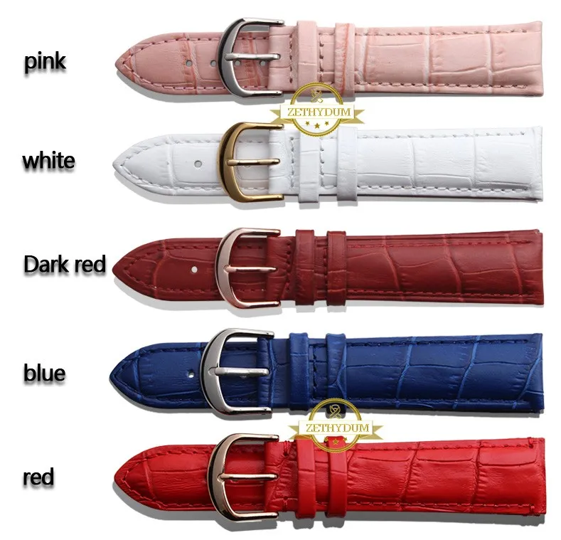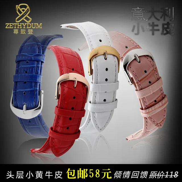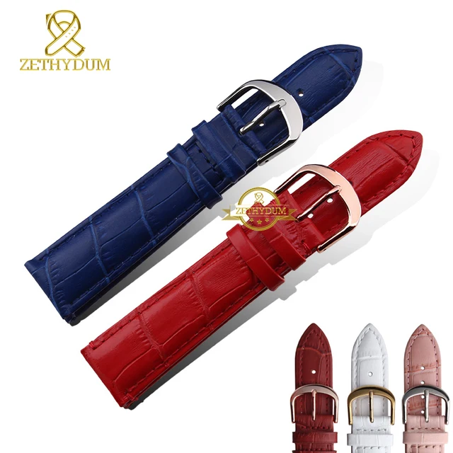 정품 가죽 시계 스트랩 여성 패션 팔찌 손목 손목 밴드 여러 가지 빛깔의 12 14 16 18 20 미리메터 핑크 블루 레드 컬러