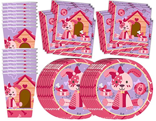 -. Title : Pink Girl Puppy Dog Birthday Party Supplies Set Plates Napkins Cups Tableware Kit for 16