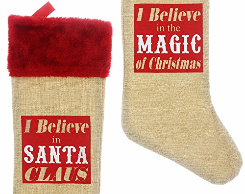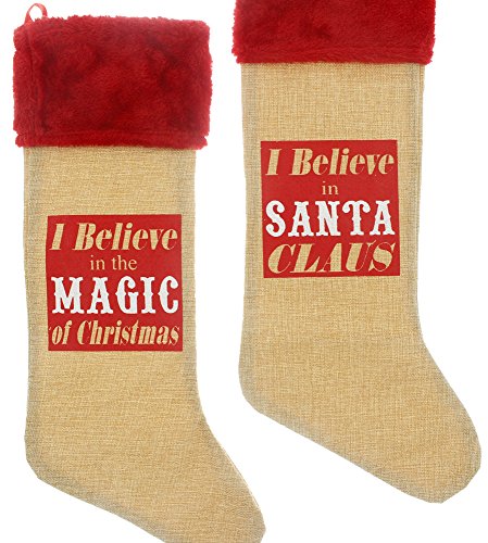 Christmas Stocking - 22 Inch Deluxe - 2 Pack - "I Believe in Santa Claus" and "I Believe in the Magic of Christmas."