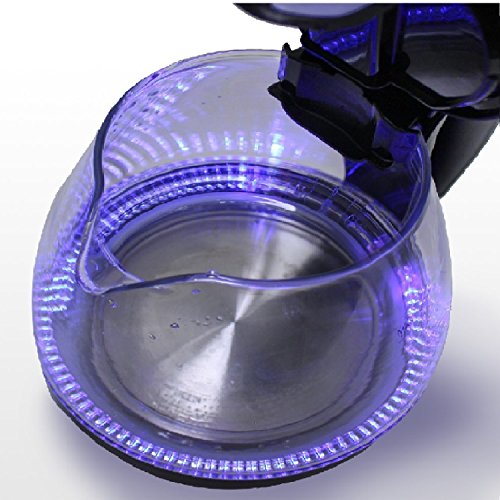 1.5L borosilicate glass cordless electric kettle with 110/120V, 1100-watt power that boils water 85-percent more efficient than stovetop kettle