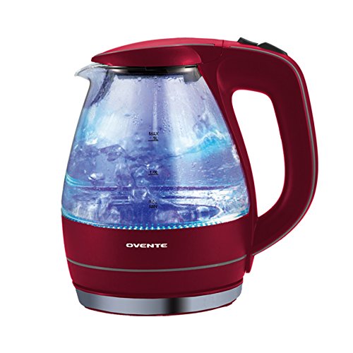 The Ovente KG83 Series is an elegantly designed glass electric kettle that looks great on any kitchen or countertops. With 1.5 liter water capacity and 1100-watt of power -- this electric kettle can quickly bring water to a rolling boil. It is proven to be 50 percent more efficient than stovetop kettle that can reduce your daily electricity use. The kettle has a concealed water heating element, so there is no build-up of objectionable mineral deposits, flip-back lid for convenient filling or cleaning, a /washable spout filter to ensure the purest results and durable and stain resistant high borosilicate glass body. For safety purposes, this kettle is equipped with automatic shut-off, boil-dry protection, secure locking lid, power on indicator light, cool touch button and comfortable stay-cool handle. Comes with a 30-inch cord that wraps neatly into the base for easy storage. Kettle approximately measures 8 x 6 x 9.3 Inch and comes with 1-year limited manufacturer warranty. To use the kettle, simply fill it with water at the sink up to desired amount using the water-level indicator, and push the steam switch button down. This kettle heats fast, approximately 5-6 minutes (at maximum level) and delivers boiling water almost instantly, in a matter of minutes hot water will be ready to use for coffee, tea, hot cereal, instant macaroni, soup, oatmeal, and so much more. For more information about proper handling and cleaning of kettle, please refer to the instruction manual.**CAUTION: KETTLE BODY MAY BE EXTREMELY HOT DURING OPERATION. PLEASE BE EXTRA CAREFUL AND USE THE COOL-TOUCH HANDLE TO AVOID BURNS.**