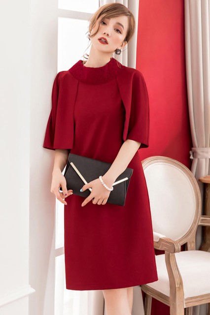 【S】バスト86cm/ウエスト76cm/ヒップ94cm/肩幅33cm/着丈94cm【M】バスト90cm/ウエスト80cm/ヒップ98cm/肩幅34cm/着丈95cm【L】バスト94cm/ウエスト84cm/ヒップ102cm/肩幅35cm/着丈96cm【XL】バスト98cm/ウエスト88cm/ヒップ106cm/肩幅36cm/着丈97cm【XXL】バスト102cm/ウエスト92cm/ヒップ110cm/肩幅37cm/着丈98cmカラー アプリコット、グレー、ネイビー、レッド素材 ポリエステル商品詳細 ◆伸縮性 なし◆透け感 なし◆裏地 ありモデル情報 身長:165cm 体重:45kgバスト:80cm ウエスト:60cm ヒップ:84cm着用サイズ:S