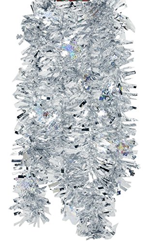 Elegant Hanging Holiday Tinsel Garland 4-inches Thick x 9-feet - Holographic Silver Snowflakes