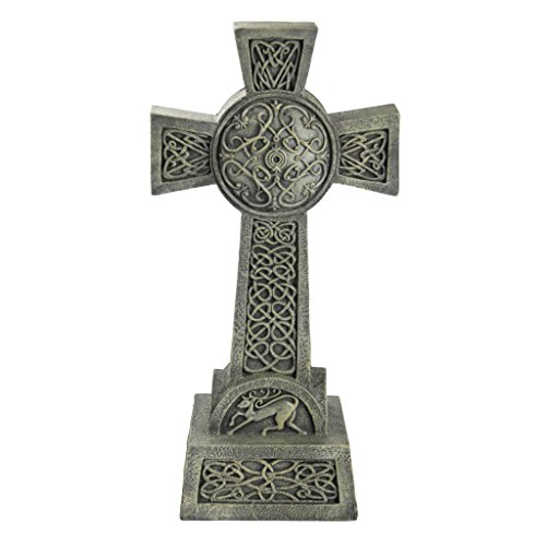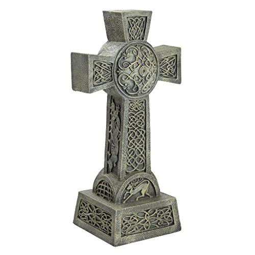 CELTIC CROSS DECOR - Embellished with historical Celtic knot work our grand scale cross figure makes a serene memorial statue as tribute to a loved one lost