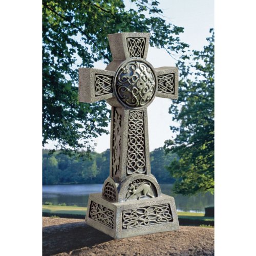 CELTIC CROSS STATUE - Display your faith and Irish heritage to visitors to your home and garden with this cross garden statue created by St. Patrick who combined the Christian cross and live-giving symbol of the sun to create the Celtic Cross