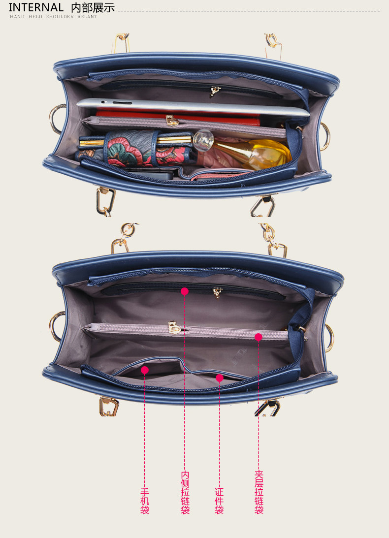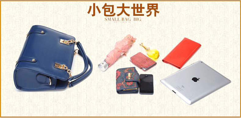 | 包包物语 | 时尚韩版手提女包。内部1个隔层拉链袋,1个拉链袋,2个置物袋 | |||