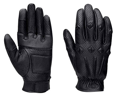 Studio : Harley-Davidson Publisher : Harley-Davidson Binding : Apparel Product Description Harley-Davidson® Men's Black Label Core #1 Skull Perforated Gloves, 98219-16VM. Goatskin perforated leather. Ergonomic thumb. Padded palm. Touchscreen compatible index finger and thumb. Elastic wrist with neoprene cuff and adjustable closure. Embroidered graphics. 98219-16VM The Men's Core Black Label Collection provides a refreshed product offering with a replenishable assortment. The Men's Core Black Label Collection embraces global styling using subtle graphics, a slimmer fit, colors and patterns that appeal to the young adult customer. 0