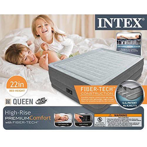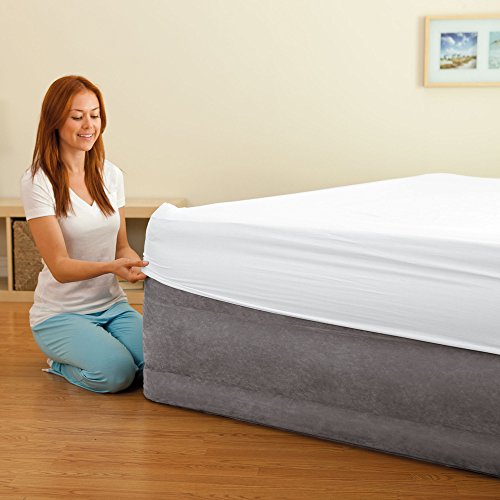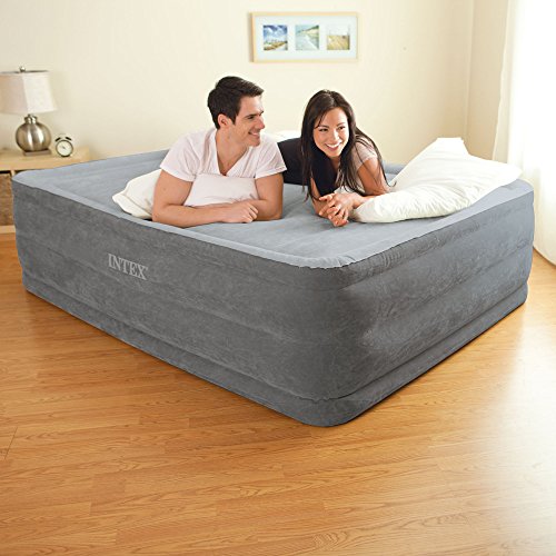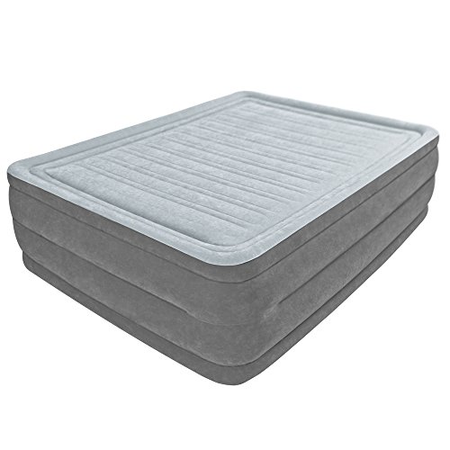 The Comfort Plush Elevated Airbed is a part of the Dura-Beam series of airbeds that are providing amazing durability for years of lasting comfort. The secret is in the Fiber-Tech beam construction, which is comprised of thousands of high-strength polyester fibers that provide enhanced comfort, stability and support. Each bed is covered in plush flocking that is soft to the touch, and the horizontal air chambers provide added stability and support around the entire bed. The mattress is also equipped with a quality-tested, 20.8-gauge waterproof flocked top with 15-gauge vinyl beams and 16-gauge sides and bottom for durability. And best of all, the Comfort Plush mattress is remarkably easy to inflate thanks to the built-in, high-powered electric pump, which does its job in a mere 3-1/2 minutes. No more fussing with tiring hand or foot pumps or rummaging through the garage for your detached electric pump. And should the mattress feel a little too soft or firm, you can customize the comfort level with the touch of a button. The Comfort Plush is raised 22 inches from the floor, making it far taller than most inflatable mattresses. And at 60 by 22 by 80 inches (W x H x L), the mattress is an official queen size, making it a good fit for fitted sheets. The Comfort Plush Queen bed--which offers a capacity of 600 pounds--is a terrific choice whether you're sleeping at the in-law's overcrowded house or setting up a guest bed in the basement. The mattress comes with an AC power cord and a duffel bag (for storage). Regarding Inflation: Measurements will vary based on the manner in which it is inflated and packaging disclaims “approximate size”. Airbeds are measured from the widest point including the beams (bulges) on the side and off the tallest point from the floor including built-in pillows if applicable. Location, temperature, and humidity will affect the airbed’s firmness. Airbeds will need to be occasionally re-inflated (topped off) to maintain desired firmness when used for more than a few days as vinyl tends to relax over time.If electrical power is not available then a separately operated pump can be connected to the control valve for inflation: simply turn the control dial to the inflation symbol, insert the air pump nozzle into the valve at the center of the control dial, and inflate the airbed.Feature