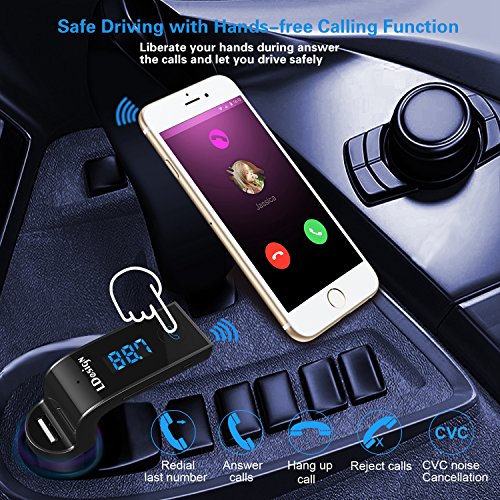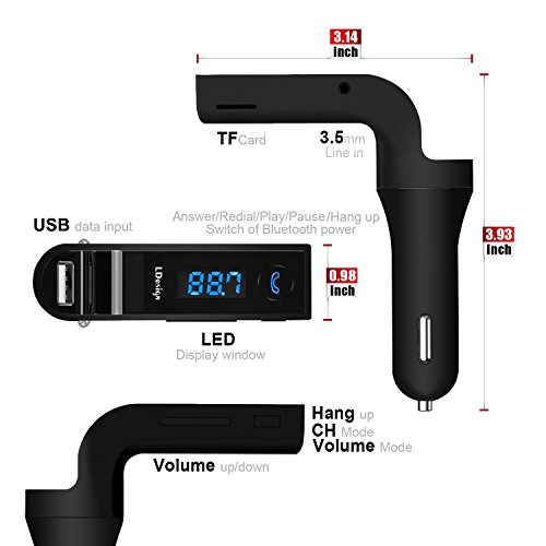 【Brilliant Bluetooth FM Transmitter】: Comes with Hands-free Car Kit, which support USB driver and TF card. It can automatically play and transmit the MP3 files of USB Flash Drive and TF Card