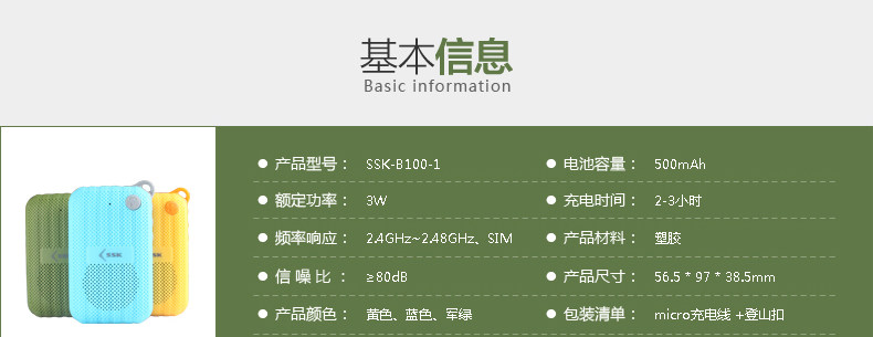 Product Name: SSK / Biao Wang B100-1 Power supply: Built-in lithium battery features: call function Package Type: official standard Connection: Bluetooth connectivity