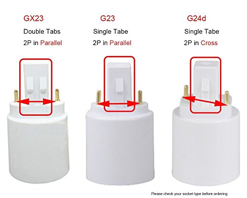 - For GX23 Only, Not for G23, G24d, GX24d which are also 2P. Need BYPASS OR REMOVE the ballast, otherwise, it doesn't light on. Gx23 Series (Female Socket Fixture) to E26 (Male Bulb Base) Adapter. GX23 has 2Tab in the central square plastic part. Please make sure your socket is for GX23, NOT G23.
