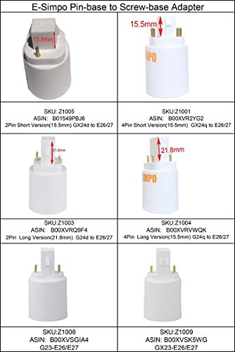 4-pack E-simpo Gx23 to E26 Adapter,gx23 to E26/e27 Lamp Base Converter,Need Bypass Ballast and Rewire.