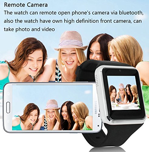 This item is exclusive by CNPGD Power on with CNPGD Logo CNPGD is legal Brand registered on USPTO Any selling activity without CNPGD authorization is illegal in USA This watch is both a smart watch to sync to your Andorid Smartphone and Iphone to push notifications, and a watch cell phone, insert your own standard size gsm network 2g sim card, it can be used as a regular cell phone. Both functions work together is ok. Without installing APK, simply bluetooth connects to your Android smart phone or Iphone, you can use such functions: Call sync: Dial the number from the watch directly to make the call. Phonebook:Sync phone's phonebook on the watch. Call history:Sync phone's call history on the watch. Audio player:Play and control phone's music ANTI-lost: When the watch distance is more than 8-10 feets with your smart phone, watch will have vibrate/ring alarm. Below sync funcitons need install apk in the user's phone,only support andriod phone. Messaging:Sync new SMS, can read and reply SMS on the watch. Remote Capture:control remote camera,take photos on the watch. Remote Notifications:Sync SMS,weather, email, wechat, twitter,facebook,skype..etc can Sync all Push Notifications from android phone. Sync Time and date:When the watch connect with the apk software, will auto sync time/date. Change clock interface: NO Dial:dial the no. from the watch directly to make the call. Phonebook:500 call history:recceived+called+missed call Messaging:SMS. MMS File manager:Yes--Need insert micro sd memory card Audio player:Support MP3/MID format, and all music files need save inside " my music" file in the TF card. MP4 player:NO Recording:Yes Profiles:General, silent, Meeting, Outdoor,user's style Alarm:Yes- have 5 alarms Calculator:Yes Calendar:Yes FM radio:Yes-- need plug in earphone Schedule power on/off:Yes--To set the timer switch pedometer:Yes Sleep Monitor:Yes Sedentary reminder:Yes Internet:Yes--WAP2.0Feature