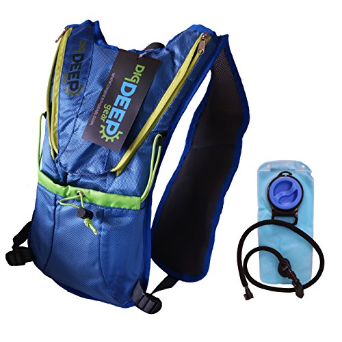 DIG DEEP GEAR HIKING HYDRATION BACKPACK/ 2 LITER BLADDER INCLUDED, Great for the thirsty Runner, Climber, Hiker, and Cyclist, Large Mouth TPU Water Bladder
