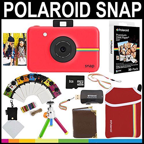 Polaroid Snap Instant Camera (Red) + 2x3 Zink Paper (30 Pack) + Neoprene Pouch + Photo Frames + Photo Album + 8GB Memory Card + Accessory Bundle