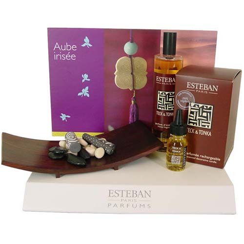A lead of nutmeg, cinnamon and clove. To the heart of sandalwood and patchouli. On a base of amber and tonka bean.Souvenir of Africa and reddened trails, wood houses redolent of spices,nutmeg and cloves, awaiting shipment to other continents. Teak and Tonka recreates this blend, one of the most delicious in the history of the company. Located in the South of France, Esteban has been creating scents and innovative products for over 30 years. They have become known for their design style, a cross between Japanese and Mediterranean sensibilities.Each collection conveys their love of travel and discovery, and a unique poetry for the home and the bath. All products are developed to the highest standards and in an environmentally friendly way. They appeal to the eye and bewitch the senses.Scents are floral, citrussy or woodsy, some are oriental, some combine many different aspects of nature.Feature