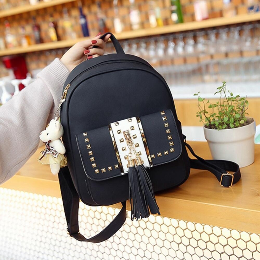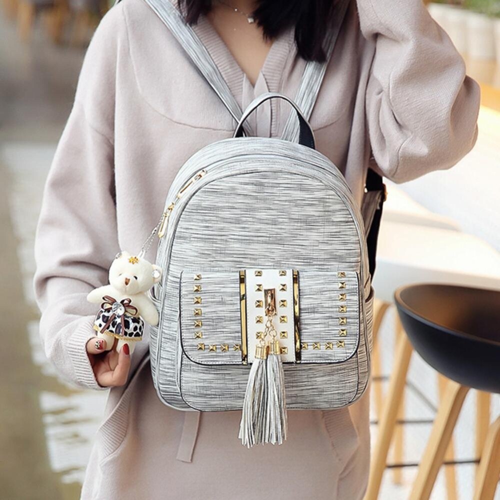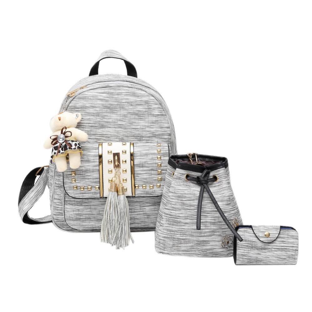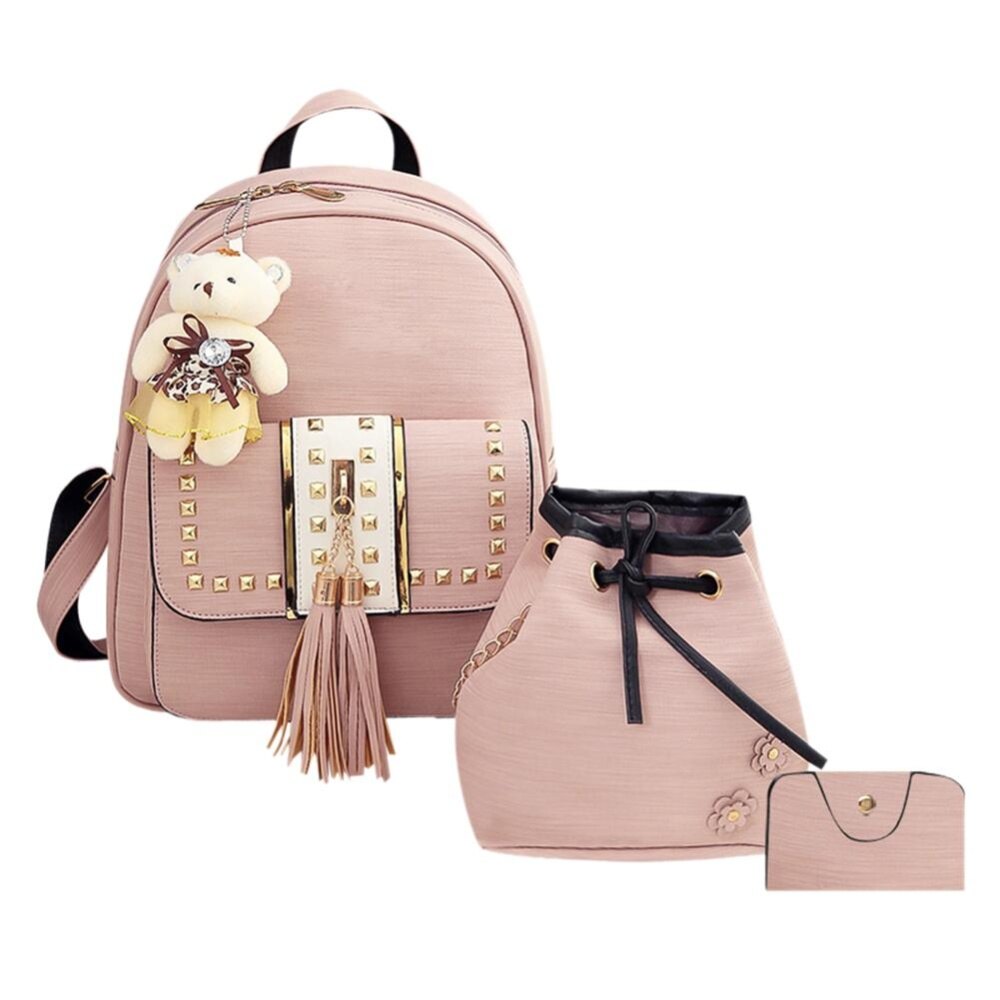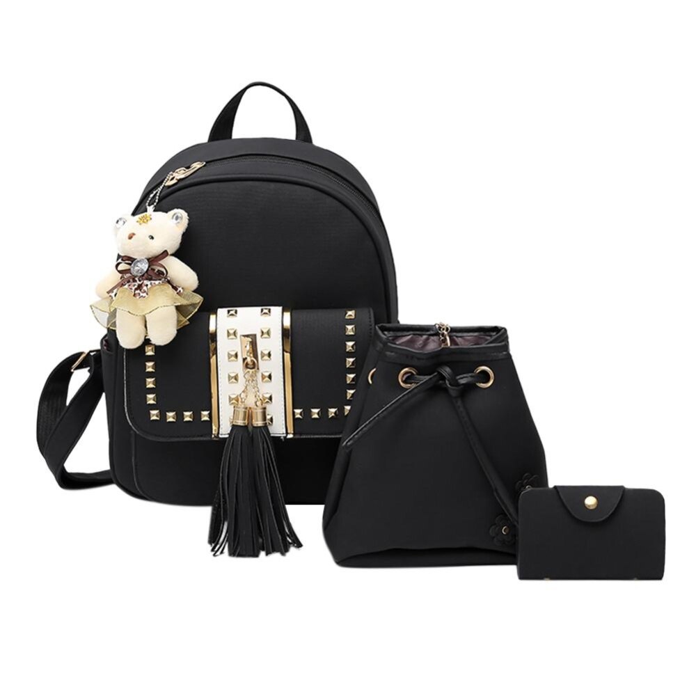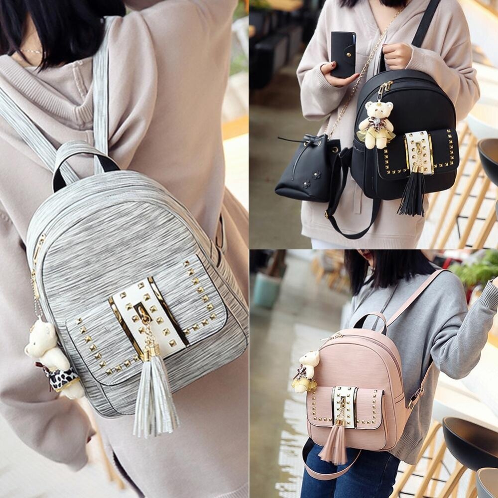 3pcs Simple Tassel Women Handbag PU Leather Backpack Girl Shoulder Bag