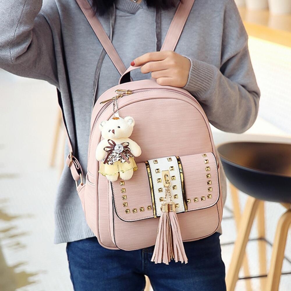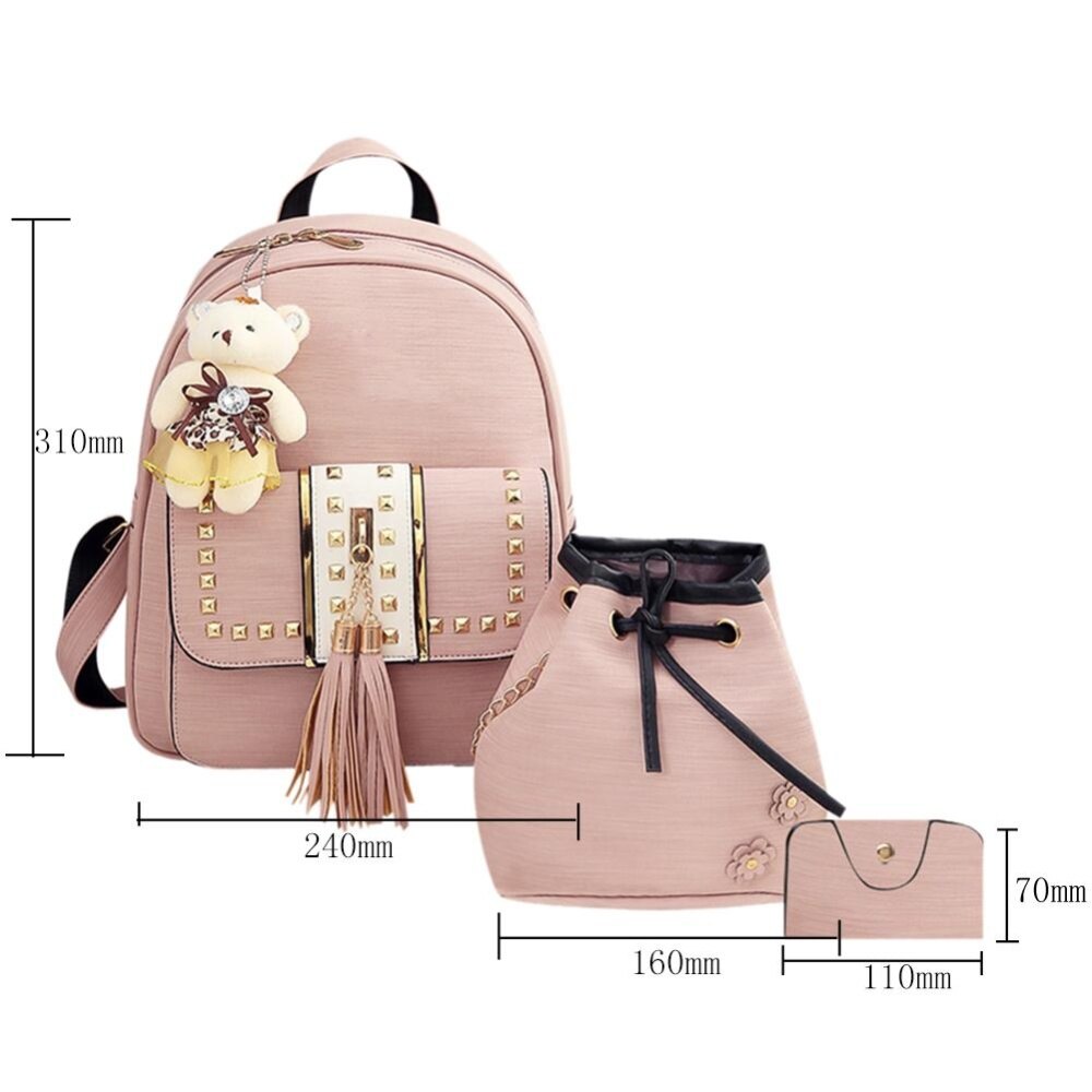 Product details of 3pcs Women Shoulder Bag PU Leather Girls Backpack Tassel Handbag