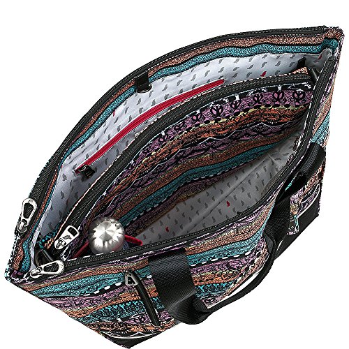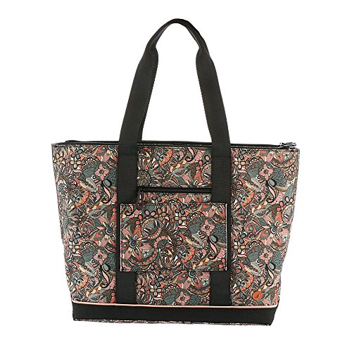 Three separate compartments for ample storage, interior lining features 2 mesh compartments, 1 mesh zipper pocket, 1 back wall zipper pocket, and an insulated water bottle compartment
