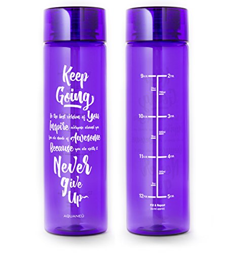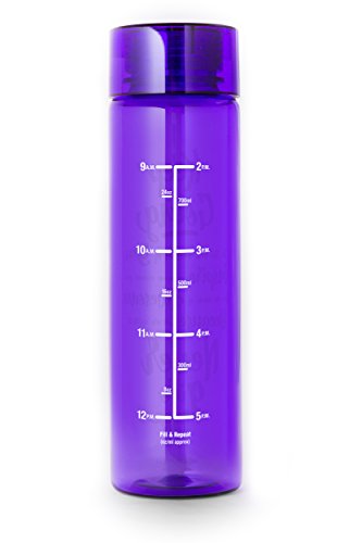 32oz Inspirational Fitness Workout Sports Water Bottle with Time Marker | Measurements | Goal Marked Times For Measuring Your H2O Intake, BPA Free Non-toxic Tritan