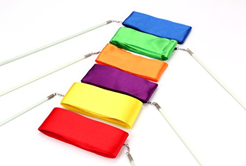 -. Title : Tosnail 12-Foot Ribbon Dancer Dancing Ribbon Streamer Rhythm Ribbon with 19" Wand - Set of 6 Colors
