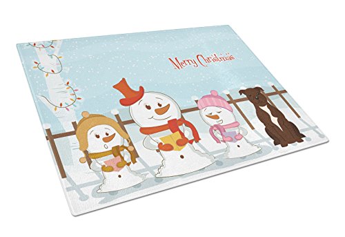 Caroline's Treasures BB2379LCB Merry Christmas Carolers Staffordshire Bull Terrier Chocolate Glass Cutting Board, Large, Multicolor