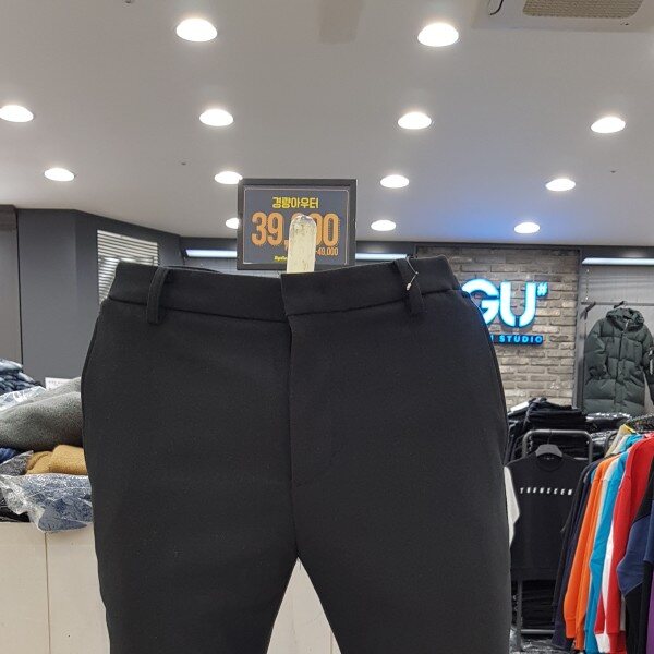 GU# 지유샵 사이드밴딩기모슬랙스 FUMWCPS101 (남성)(겨울) 양쪽 허리 옆 밴딩처리한 슬림핏 . 안감기모원단 보온성이 좋음.마네킨32착장.