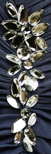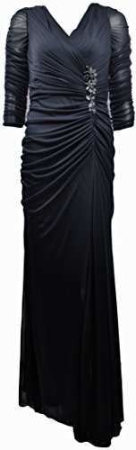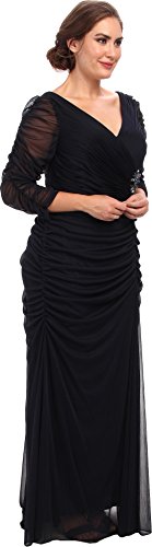 Product DescriptionThree-quarter-sleeve fully ruched double V-neck gown with beaded waist0