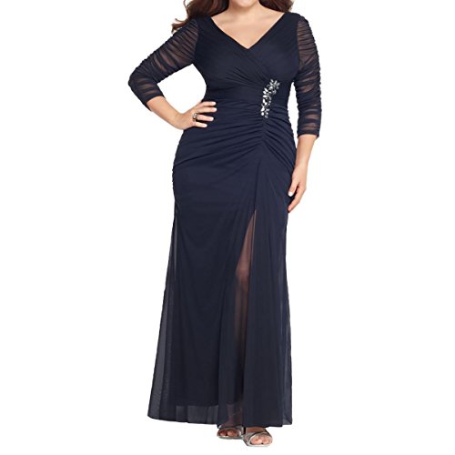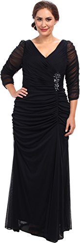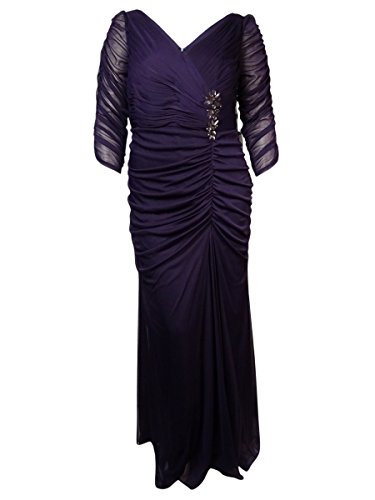 Adrianna Papell Women's Plus-Size Three-Quarter Sleeve Ruched Gown