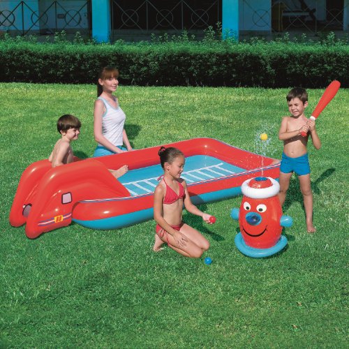 Inklusive abnehmbarer Rutsche, interaktivem Hydranten, 3 Spielballen uznd aufblasbarem Baseball-Schlager