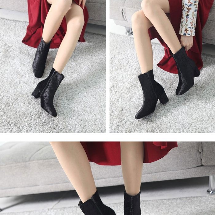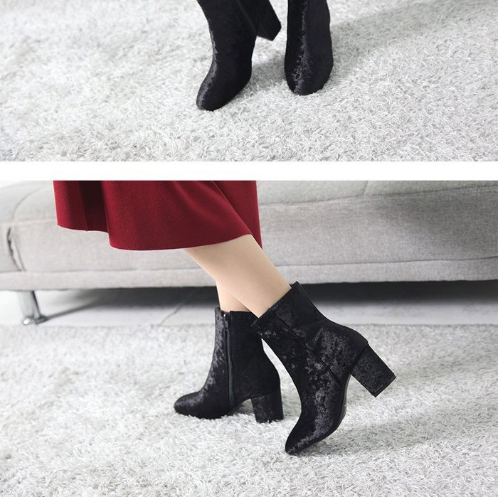 商品名:ショートブーツ レディース チャンキーヒール 太ヒール ベルベット 2017 秋冬 ファッション 靴 婦人靴
