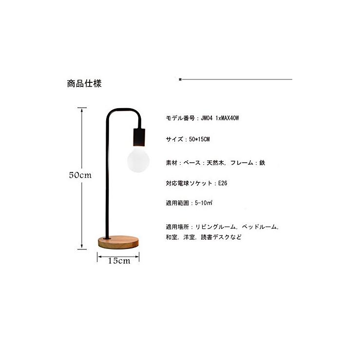【사이즈】본체 사이즈:(약)높이:50CM,스탠드 직경:15CM,중량:980g,소재:스탠드/천연목,암/철,물림쇠E26백열전구나 LED조 광전구에 대응합니다.hour수:최대한40hour,전구는 별매입니다.