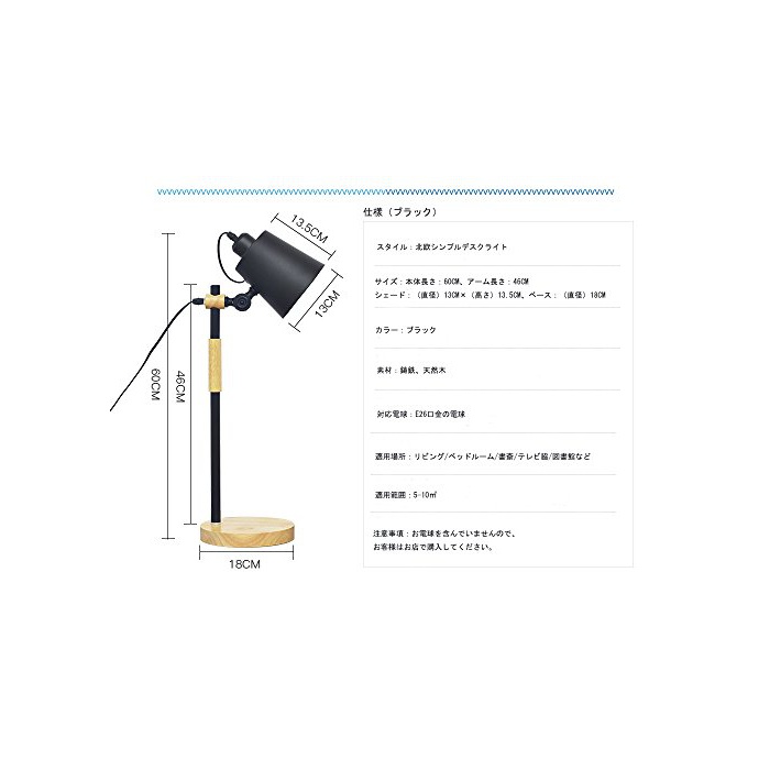 2.상품 사이즈(약):본체 높이:60CM,스탠드 직경:18CM,쉐이드:(직경)13CM×(높이)13.5CM,중량:1700g;소재:쉐이드:주철,스탠드:천연목;조광스위치 를 위해,돌리면 점등인지(든가) 소등합니다.물림쇠E26LED조 광전구나 백열전구에 대응합니다.전구는 부속 하지 않으므로,주의해 주십시오.