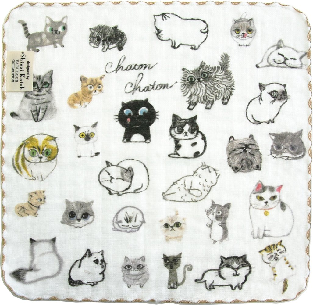 A worldwide miscellaneous goods designer Shinzi Katoh An original pattern, free kittens are drawn full of handkerchiefs, and it is becoming an irresistible handkerchief for cat lover.