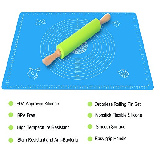 (Usparkle)/Kitchen Dining/Cook's Tools Gadgets/DIRECT FROM USA/Rolling Pin - Usparkle Nonstick Silicone Rolling Pin 16.9' and Thick Large Silicone Pastry Mat...