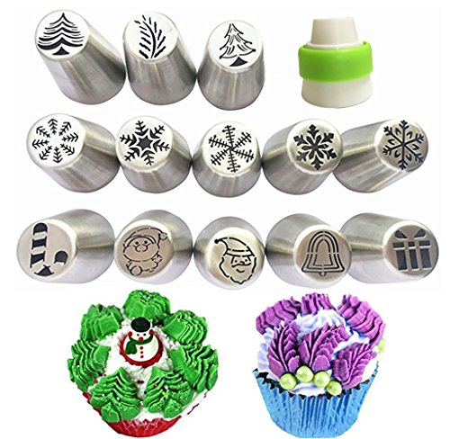 NEW Russian Piping Tips Xmas Design 14pcs/Set -13 Russian Tips +1 Coupler/ Large Size Icing Piping Nozzle Tips